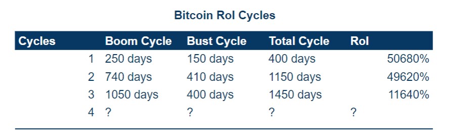من الجدول المرفق ، يمكننا أن نلاحظ أن دورة الازدهار والكساد قد أصبحت أكثر امتدادًا بمرور الوقت وأن عائد الاستثمار قد انخفض من دورة إلى أخرى ، كما ذكر وو في تغريدته المذكورة أعلاه.