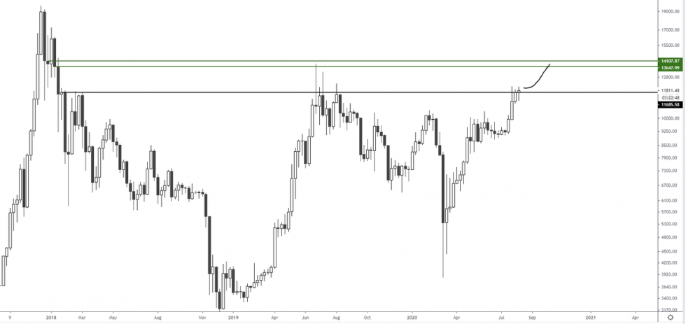نظرًا لأنه كان قادرًا على الإغلاق عند هذا المستوى السعري ، فقد أغلقت شمعته اليومية والأسبوعية فوق 11،700 دولار أمريكي للمرة الأولى منذ عام 2017.