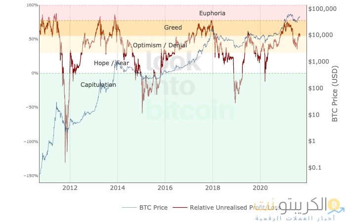 علاوة على ذلك ، يعد صافي الربح والخسارة غير المحققين مؤشرًا رئيسيًا آخر يساعد في تأكيد اتجاه أي اتجاه مستمر. كما يتضح من الرسم البياني المرفق ، تم تمييز جميع قمم السوق السابقة بعلامة تقاطع إلى منطقة “النشوة”. بقدر ما يتعلق الأمر بالحالة الحالية لهذا المؤشر ، فقد دخلت NUPL في منطقة الجشع بالفعل من منطقة الإنكار / التفاؤل. في الواقع ، إنه يتجه نحو القمة.