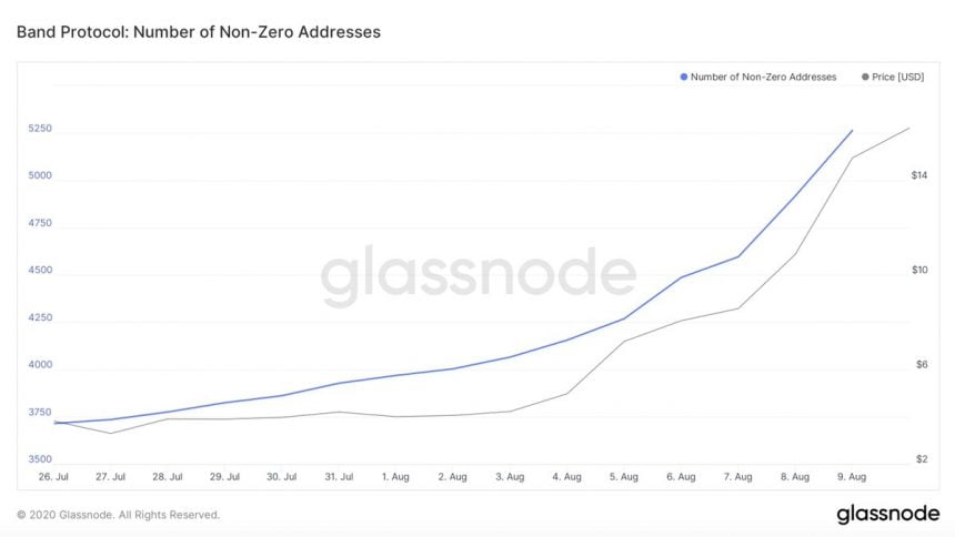 “زاد عدد العناوين الفريدة غير الصفرية التي تحمل BAND بنسبة 42٪ في الأسبوعين الماضيين! يستمر هذا المؤشر في الزيادة بشكل كبير حيث يقفز مستثمرون جدد إلى [Band Protocol] تدريب “أحد الباحثين وأشار.