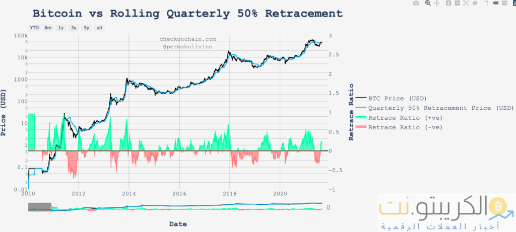 علاوة على ذلك ، فإن نسبة ارتداد البيتكوين التي كانت باقية في المنطقة السلبية حتى وقت قريب ، جعلت دخولها مرة أخرى إلى المنطقة الإيجابية. في الواقع ، إنه حاليًا على قدم المساواة مع المستوى 0.2 الذي تم تحقيقه خلال المرحلة الأولية من ارتفاع 2021.