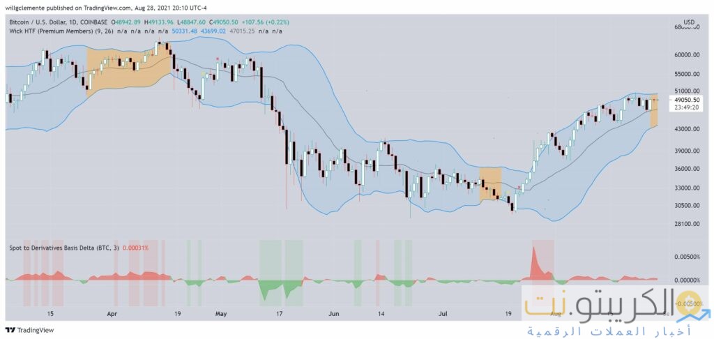 وبالمثل ، في أبريل من هذا العام ، تمكنت من الضغط على السوق دون أعلى مستوياتها البالغة 60 ألف دولار. وأثناء شهر يوليو ، أخرجت السوق من فترة توطيد مدتها 3 أشهر. هذا يعني ، إلى حد معقول ، أنه يمكن توقع التأرجح في أي من الاتجاهين في هذه المرحلة.