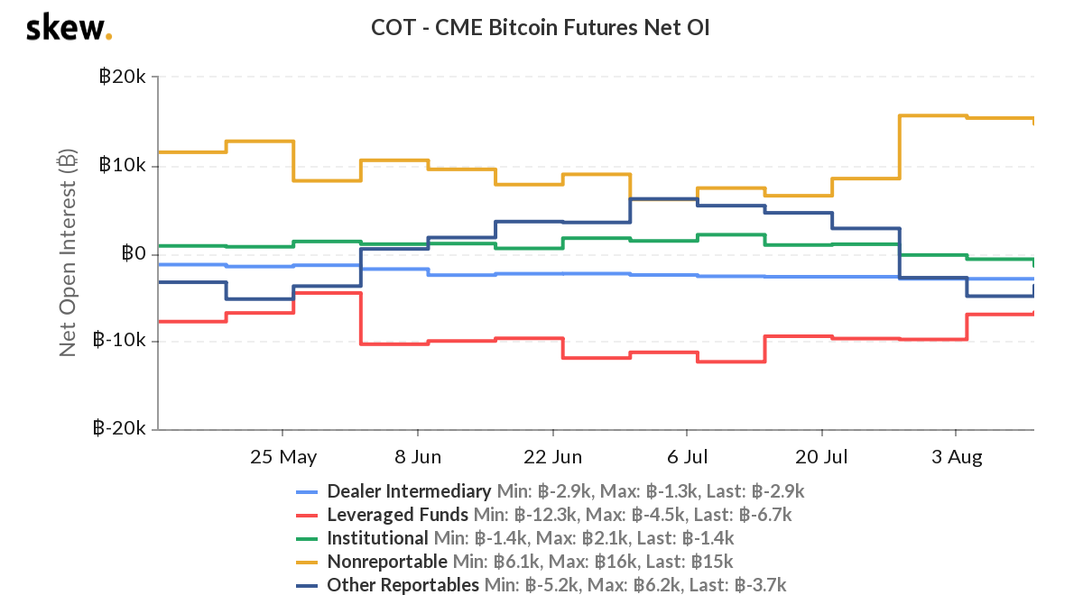 أظهر تقرير CoT أن تجارة التجزئة [yellow] هو الأكثر صعودًا بصفقة شراء بقيمة 15 ألف بيتكوين. التطور المثير للاهتمام هو انخفاض في وضع صناديق الاستدانة المعروف باسم صناديق التحوط. المركز القصير الحالي للأموال ذات الرافعة المالية هو 6.7 ألف بيتكوين فقط.