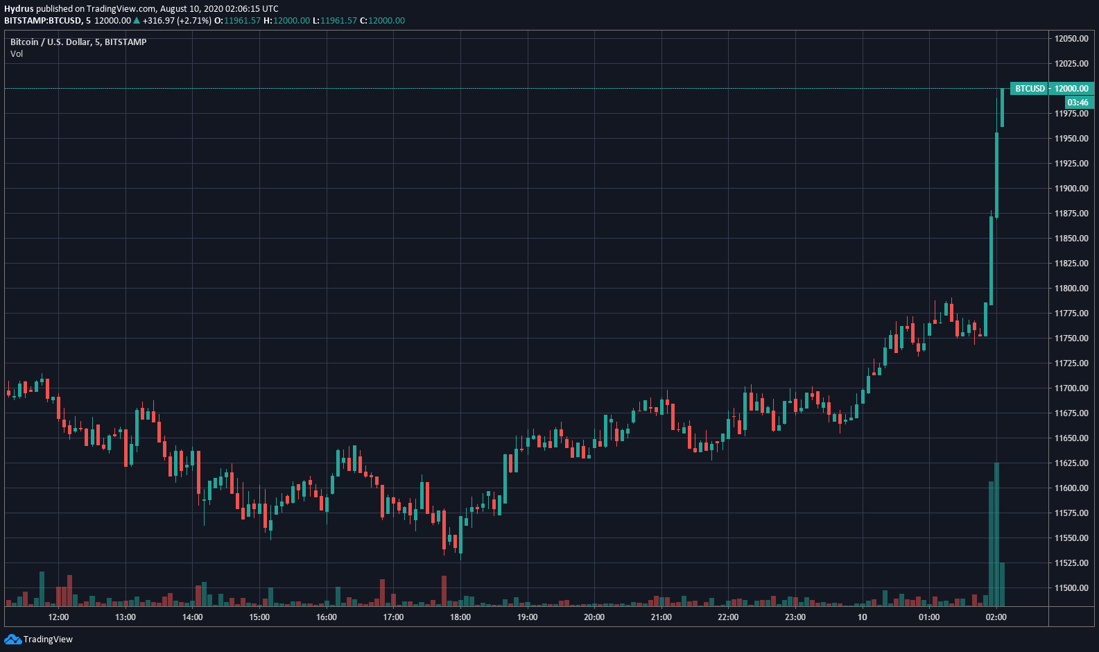 قبل دقائق فقط ، تجاوزت عملة البيتكوين مبلغ 12000 دولار أمريكي للمرة الأولى منذ انهيار الثاني من أغسطس. ارتفعت العملة المشفرة الآن بنسبة 3٪ خلال الـ 24 ساعة الماضية وحوالي 2٪ خلال جلسة تداول يوم الاثنين (حتى الآن) وحدها.