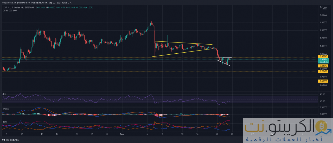 إضافة إلى هذا الموقف الرهيب ، فإن النموذج الهبوطي الناتج يهدد ببيع مكثف آخر في المستقبل. في وقت كتابة هذا التقرير ، تم تداول XRP عند 0.92 دولار ، منخفضًا بنسبة 1.26٪ خلال الـ 24 ساعة الماضية.