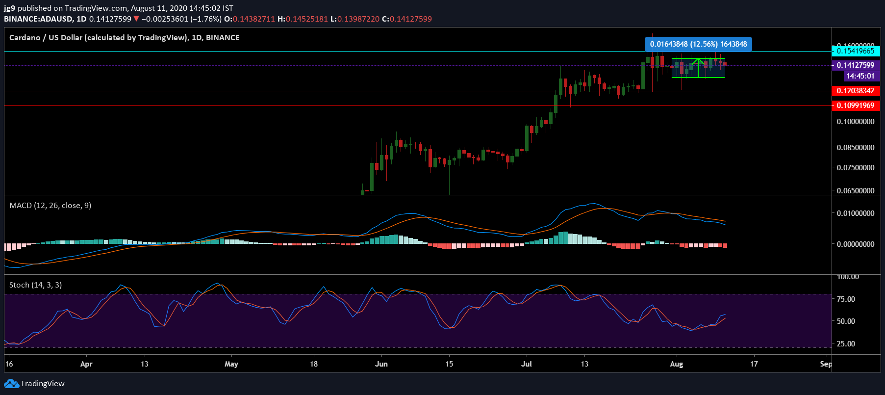 تحتل كاردانو حاليًا المرتبة التاسعة على قائمة CoinMarketCap برأسمال سوقي قدره 3.6 مليار دولار. منذ بداية الشهر ، ارتفع سعر Cardano بنسبة تزيد عن 12 في المائة ويتم تداوله الآن عند 0.14 دولار. إذا استمر الاتجاه الصعودي ، فمن المرجح أن يتم اختبار المقاومة عند 0.15 دولار مرة أخرى. ومع ذلك ، إذا بدأت العملة في اتجاه هبوطي ، فهناك دعمان أساسيان عند 0.13 دولار و 0.12 دولار.