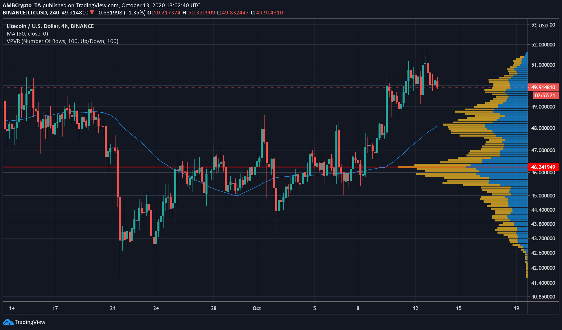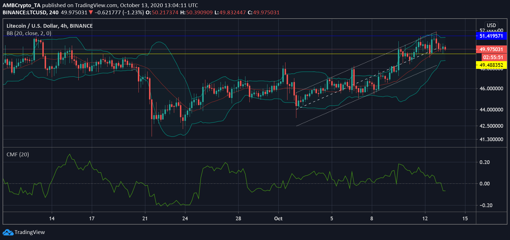 شهدت Litecoin زيادة في قيمتها كسعر Bitcoin [BTC] ارتفع على المخططات. ومع ذلك ، لم تتمكن من تجاوز خسائرها في وقت سابق في سبتمبر. على الرغم من حركة النطاق المنخفضة ، تغلب LTC على نقطة سعر مهمة عند 49.48 دولار ، والتي كانت الآن دعمها. تم تقييم الأصل الرقمي عند 49.94 دولارًا ، في وقت كتابة هذا التقرير ، حيث ظلت مقاومته عند 51.41 دولارًا.