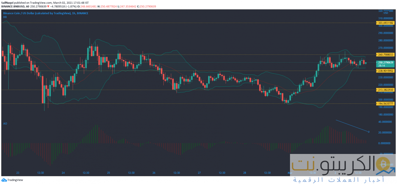 أثبت المستوى 194.5 دولارًا أنه مستوى دعم قوي لعملة Binance منذ أن تعافى رابع أكبر عملة مشفرة في العالم من مستويات قياسية بعد عمليات البيع الأوسع في السوق الأخيرة. قبل التراجع ، ارتفع سعر BNB بنسبة 150٪ تقريبًا في غضون ثلاثة أيام فقط ولمس ATH بما يزيد عن 333 دولارًا. وقد وضع هذا أيضًا BNB بين أكبر الرابحين شهريًا لشهر فبراير ، بمكاسب تزيد عن 465٪.