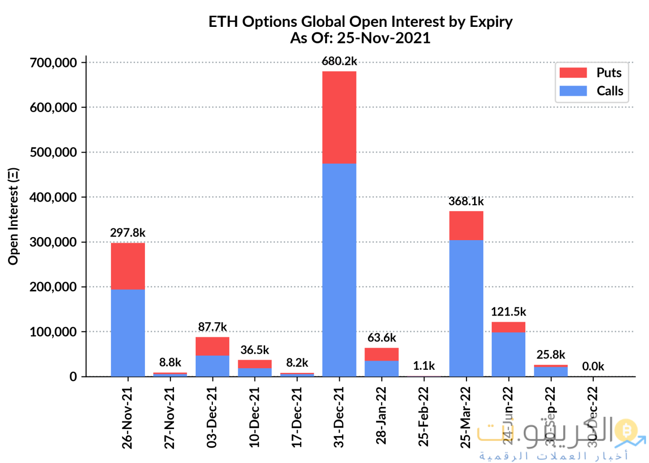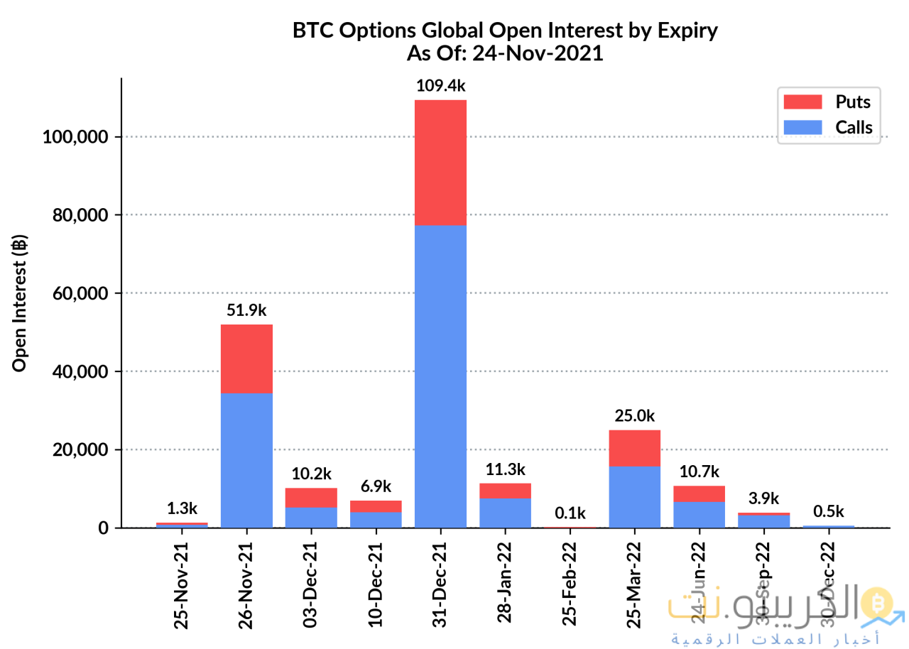 وفقًا لبيانات من Skew ، ستدخل أكثر من 51.9 ألف بيتكوين في انتهاء صلاحية العقد بعد 26 نوفمبر. وبالمثل ، بالنسبة إلى Ethereum ، تنتهي خيارات 297.8k من ETH نحو التنفيذ ، وكان اللغز الرئيسي شائعًا. كان لكل من خيارات Bitcoin و Ethereum أغلبية في عمليات شراء المكالمات مما يعني أنه سيكون هناك عدد أكبر من العقود التي تتعرض للخسائر.