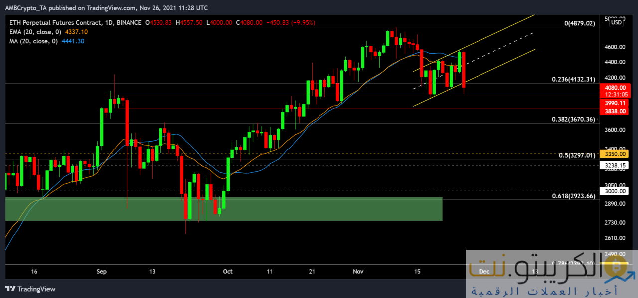 مع Ethereum ، قد تكون منطقة إعادة الاختبار أقل قليلاً من مستواها الحالي. في وقت النشر ، يبدو أن الرسم البياني اليومي لـ ETH يخترق ما دون قناته الصاعدة. قد تؤدي التصحيحات إلى انخفاض Ethereum إلى نطاق 3600 دولار – 3700 دولار قبل التعافي في الرسوم البيانية. ومع ذلك ، لا يمكن التكهن بمثل هذا الانخفاض الهائل خلال عطلة نهاية الأسبوع ، وقد يتكشف خلال الأسبوع المقبل أو نحو ذلك.