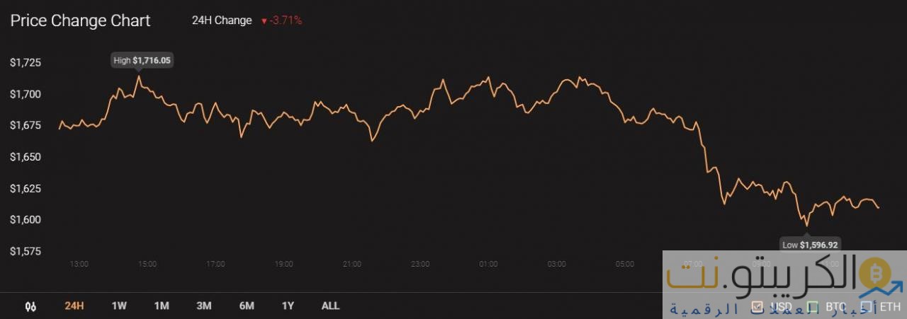 في وقت كتابة هذا التقرير ، تم تداول Ethereum بسعر 1635 دولارًا أمريكيًا بقيمة سوقية قدرها 184.7 مليار دولار.
