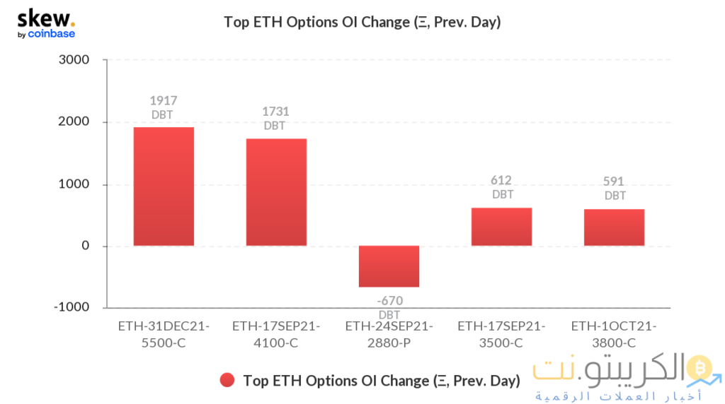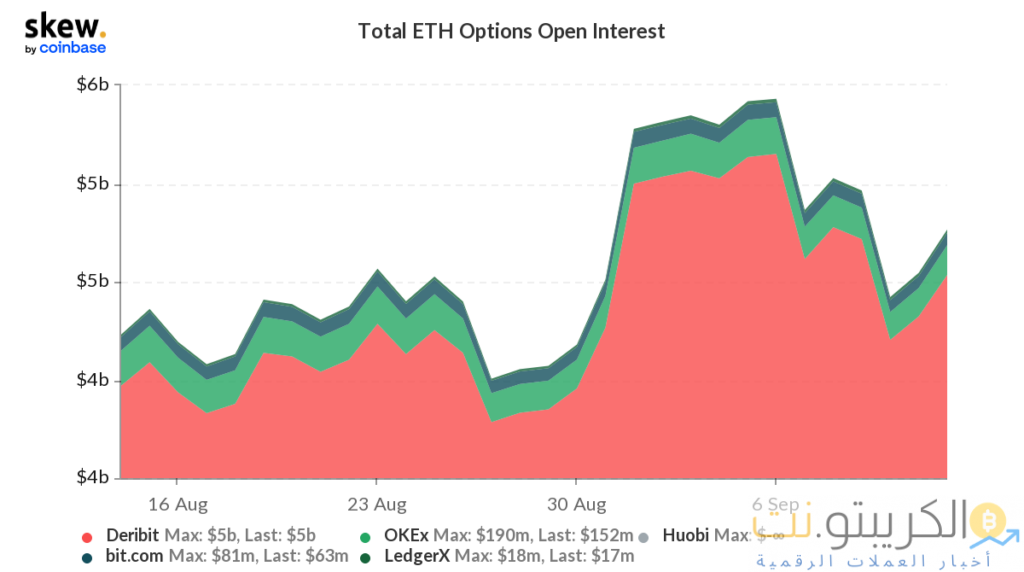 علاوة على ذلك ، أظهر إجمالي الفائدة المفتوحة أيضًا علامات انتعاش مؤخرًا. وفقًا للبيانات من Skew ، كان OI يحوم حول 4 ملايين دولار في Deribit في 10 سبتمبر. لكن في وقت نشر هذا الخبر ، صورت نفس القيمة أكثر من 5 مليارات دولار ، مما يشير إلى عودة ظهور الفائدة. هذا يعني بشكل أساسي أن عدد العقود التي يتم تربيعها أقل من عدد العقود الجديدة المضافة.