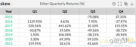 على مدار التاريخ ، ظل الربع الثالث دائمًا مليئًا بالأحداث بالنسبة إلى Ethereum. في 2015 و 2018 و 2019 ، ظل العائد على الاستثمار الفصلي لـ ETH سالبًا [-75%, -50% and -38%, to be precise]. ومع ذلك ، فقد تطور السوق مع مرور الوقت.