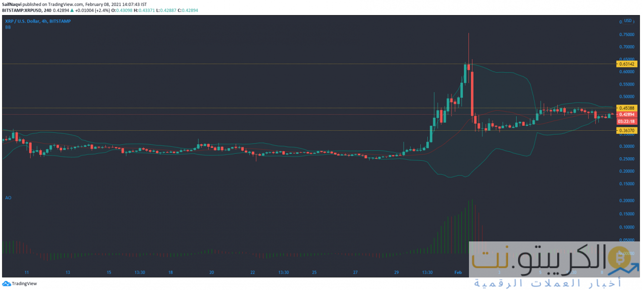 ال مذبذب رائع كانت محايدة صعودية حيث تم تسجيل عمود أخضر واحد على المؤشر في جلسة التداول الأخيرة. من الآن فصاعدًا ، يمكن أن يستمر XRP في التحرك ضمن النطاق على الرسوم البيانية.