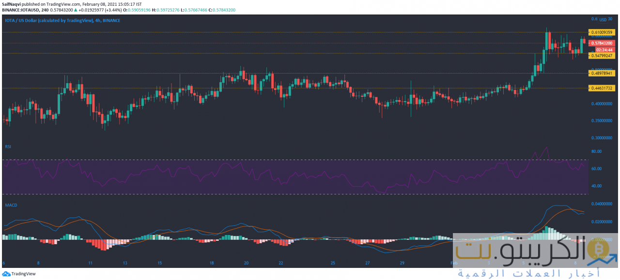 صمد المضاربون على ارتفاع IOTA عند دعم 0.54 دولار بعد أن سحب التصحيح السعر هبوطيًا من أعلى مستوى محلي عند 0.61 دولار. لوحظ بعض الاتجاه الصعودي في السوق مثل MACD اقترب من تقاطع صعودي. ومع ذلك ، فإن الارتفاع فوق أحدث ارتفاع محلي غير مرجح حيث انخفضت أحجام التداول إلى النصف تقريبًا خلال الـ 24 ساعة الماضية. ال مؤشر القوة النسبية أشار أيضًا إلى الأسفل من أسفل منطقة ذروة الشراء.