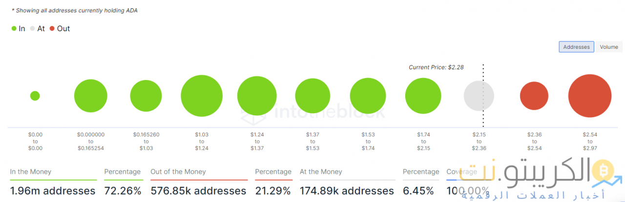 ومع ذلك ، لا يبدو أن هذا العدد المنخفض من العناوين In the Money يردع حاملي ADA. في الواقع ، أشارت بيانات ITB إلى أن عدد Hodlers ADA وصل إلى ATH جديد هذا الشهر من 245.6 ألف عنوان بحجم إجمالي 5.62 مليار ADA.