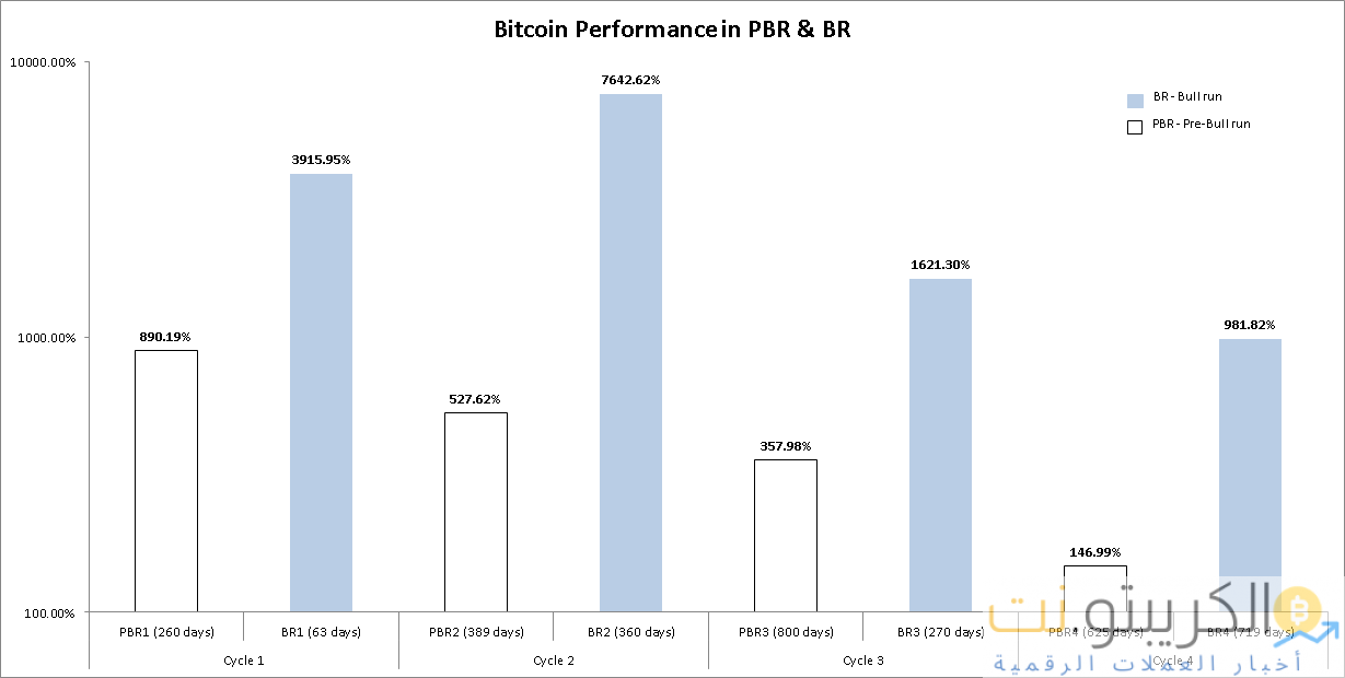 لفهم الدورات بشكل أكبر ، دعنا نقسمها إلى مرحلة ما قبل الصعود [PBR] وجري الثور [BR]. لغرض هذه المناقشة ، دعنا نصنف الرسم البياني أعلاه إلى PBR و BR.