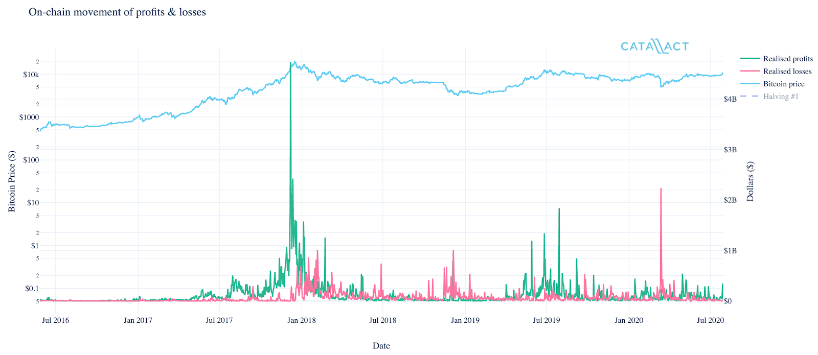 وفقًا لـ OKEx و Catallact ، لا يبدو أن هذا هو الحال بعد الآن. وفقًا لتقريرهم ، تم استبدال هذه المواقف بفئة مستثمر أكثر ثباتًا. نظرة على الرسوم البيانية للربح والخسارة المحققة تدعم هذا الافتراض حيث شهد الخميس الأسود إزالة جميع “الأيدي الضعيفة”.