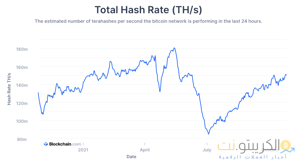 من ناحية أخرى ، ارتفع معدل تجزئة البيتكوين إلى أعلى مع مرور كل يوم. لقد شهدت بالفعل واحدة من أعمق الانهيارات في الفترة من مايو إلى يونيو ، لكن الأمور تحسنت كثيرًا منذ ذلك الحين.