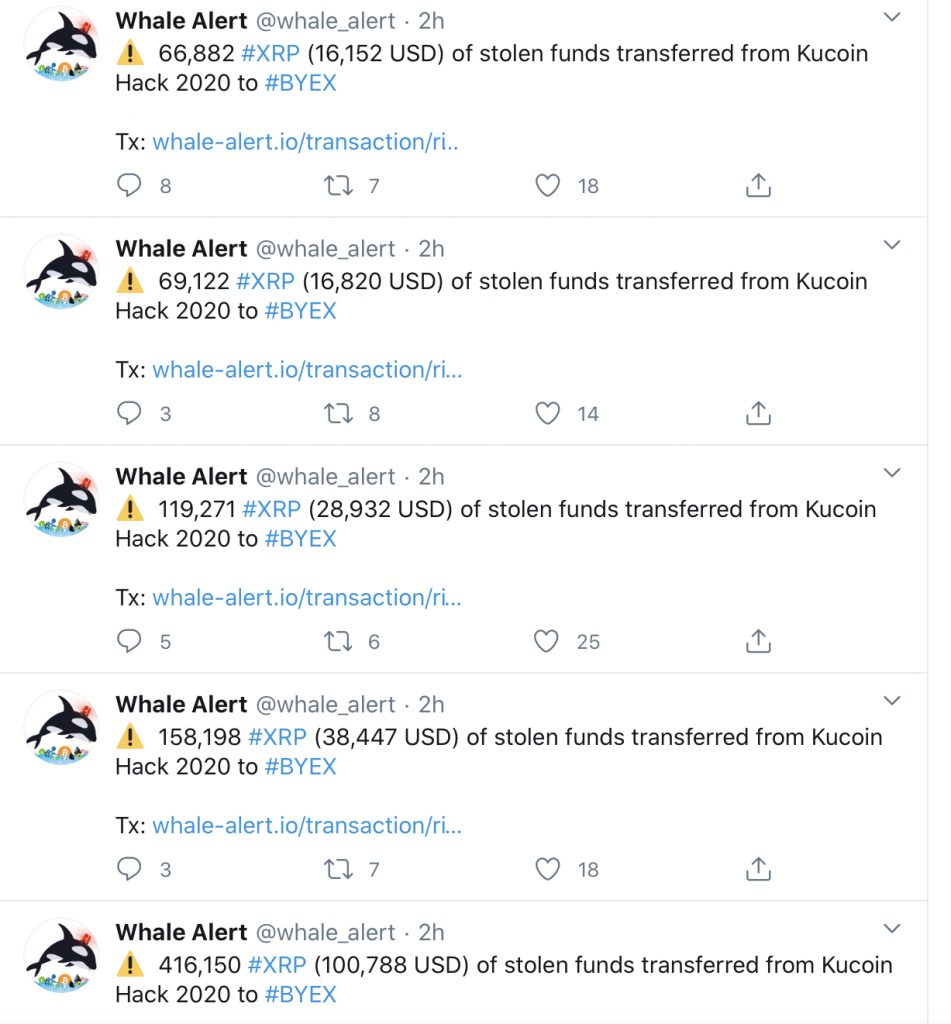اختراق KuCoin حيث تم نقل أكثر من مليون XRP إلى بعض المنصات كمنصة بينانس