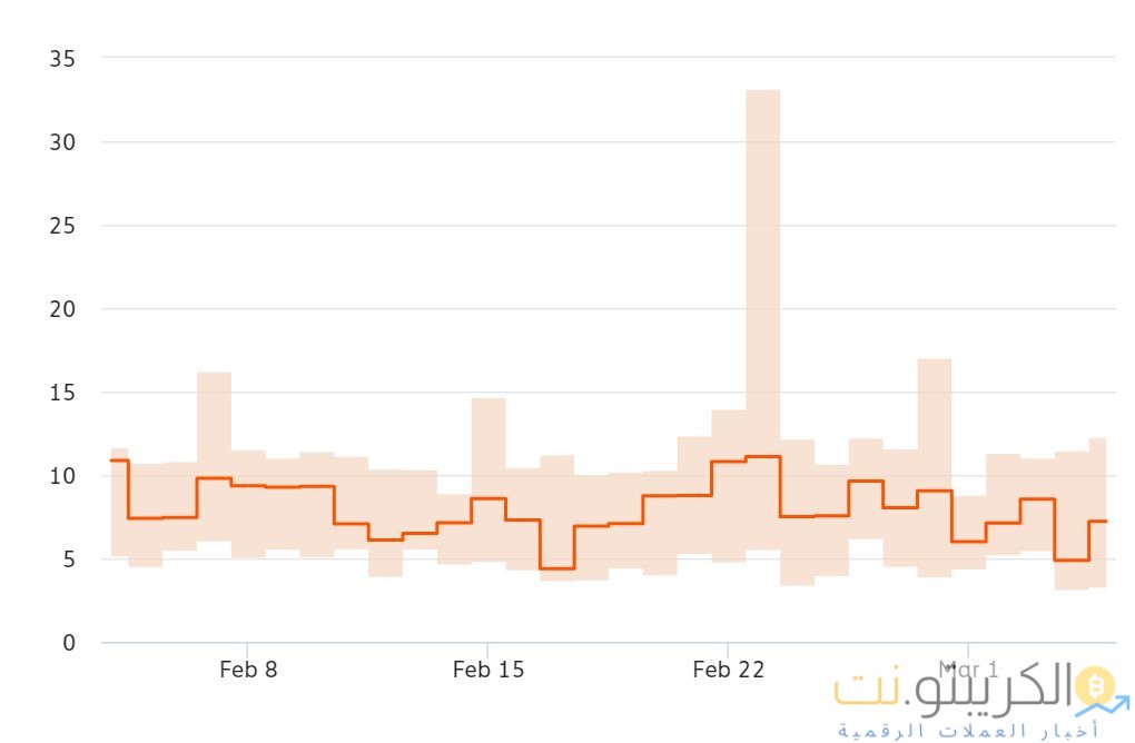 في حين أن حركات الحيتان ربما تكون قد اتخذت مركز الصدارة خلال الشهرين الماضيين ، استمرت كثافة تداول Ethereum في الانخفاض منذ الأسبوع الثالث من فبراير. يشير الانخفاض في كثافة التداول إلى أن البائعين هم الآن أكثر سيطرة من المشترين في السوق.