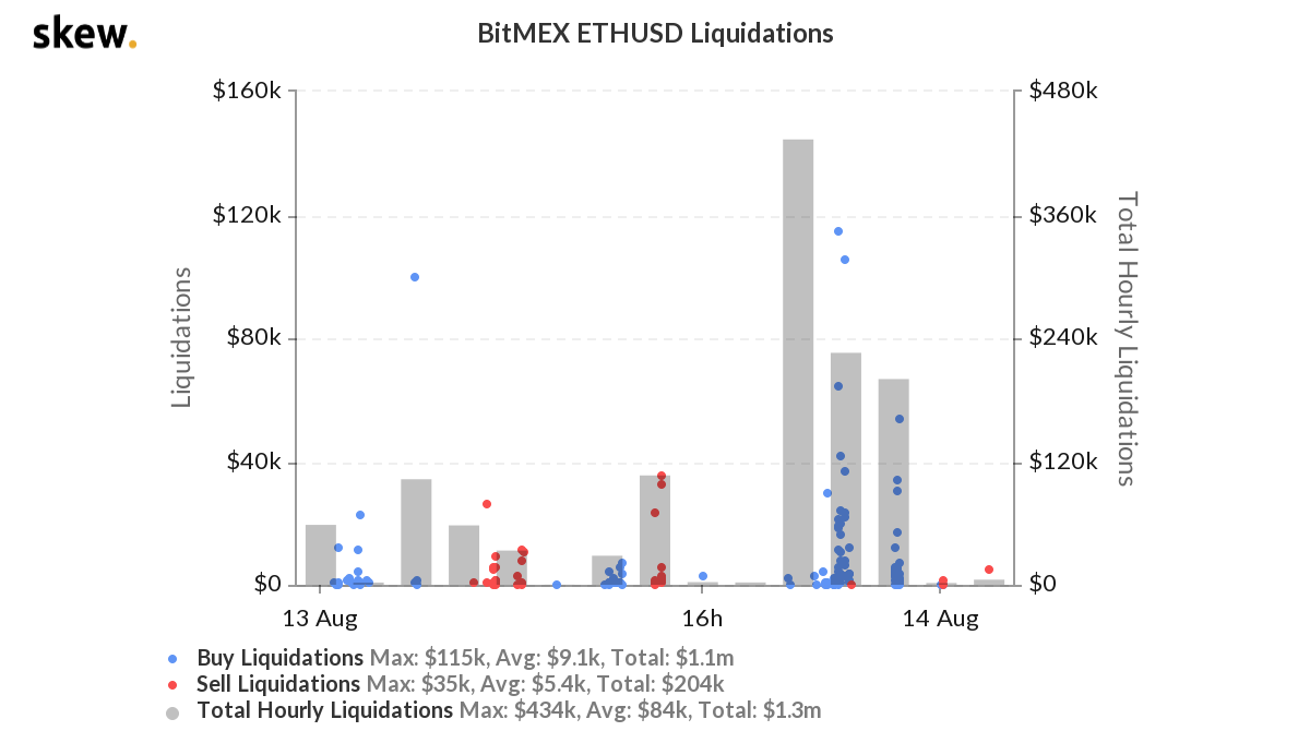 مع ارتفاع السوق الفوري ، كان سوق المشتقات يعكس أيضًا اهتمامًا كبيرًا من المتداولين. وفقًا لمزود البيانات Skew ، مع ارتفاع سعر الإيثر ، تم تصفية صفقات بيع بقيمة 1.3 مليون دولار في اليوم الماضي في BitMEX.