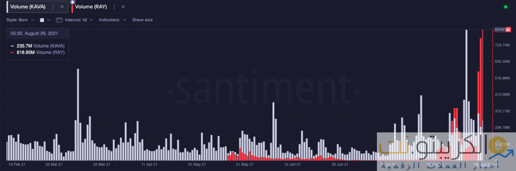 بصرف النظر عن الرموز المميزة الشهيرة مثل UNI و LUNA و AVAX و AAVE ، فإن الرموز المميزة الأقل شهرة مثل KAVA و RAY أصبحت أيضًا تقدر قيمتها مؤخرًا. في الواقع ، وفقًا للبيانات الواردة من Messari ، تمكنت KAVA من تحقيق عوائد بنسبة 56.6٪ إلى HODLers خلال الشهر الماضي. بالتوازي ، حقق مستثمرو RAY أرباحًا بنسبة 236.5 ٪ في نفس النافذة الزمنية.