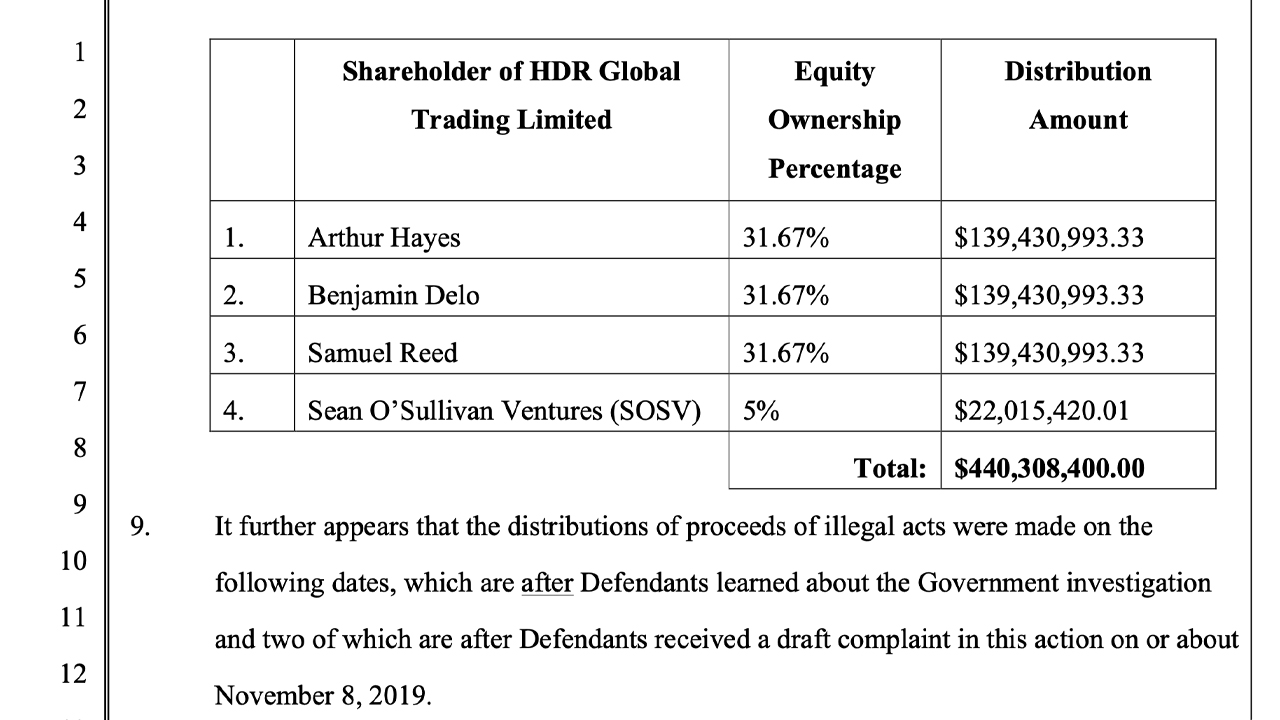 “أثناء التحضير للانطلاق من السلطات الأمريكية ، نهب المتهمون Hayes و Delo و Reed حوالي 440،308،400 دولارًا من عائدات الأنشطة الشائنة المختلفة التي حدثت على منصة Bitmex.”