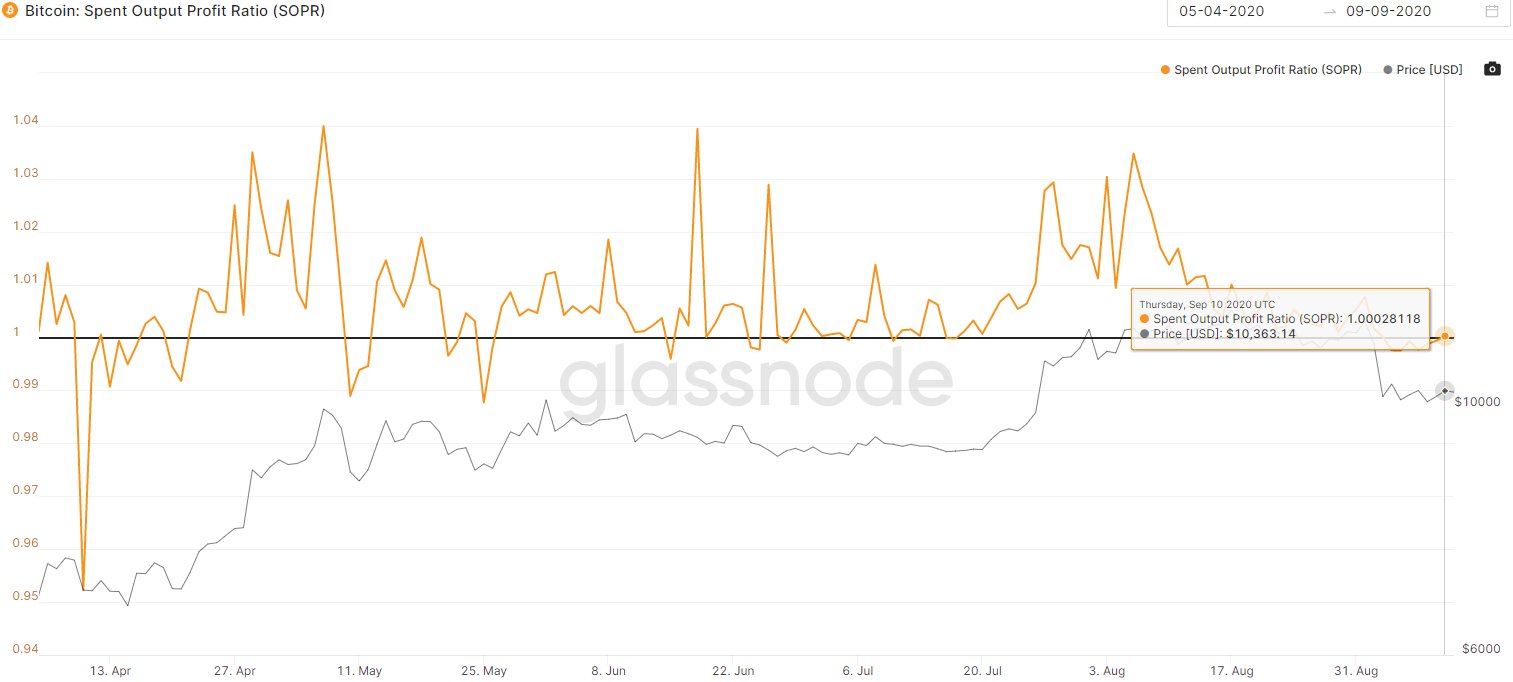 تقيس نسبة ربح الناتج المنفق إذا كان متداولو البيتكوين يحققون ربحًا. يتم حسابها بقسمة “السعر المباع” على “السعر المدفوع”. عندما يكون SOPR> 1 ، فهذا يعني أن أصحاب المخرجات المستهلكة هم في ربح وقت المعاملة ؛ وإلا فهم في حيرة. كما يمكن ملاحظته ، في وقت كتابة هذا التقرير ، كان SOPR أعلى بكثير من 1.