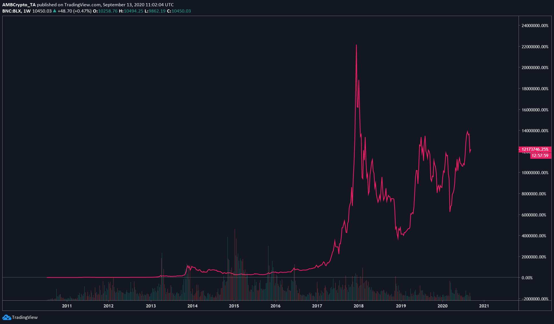 منذ بداية Bitcoin ، ارتفعت أكبر عملة مشفرة في العالم بنسبة 12 مليون بالمائة. 12 مليون في المائة ، ولا ، هذا ليس t1ypo. ارتفع سعر البيتكوين بنسبة ١٢،١٧٣،٧٤٦ ٪ ، حتى كتابة هذا التقرير ، ولم يكن هذا حتى ATH من Bitcoin. ومع ذلك ، في حين أن الغرباء قد يفاجأون بحجم النمو ، فإن النقطة المهمة هي أن هذا عن طريق التصميم وليس بالصدفة.