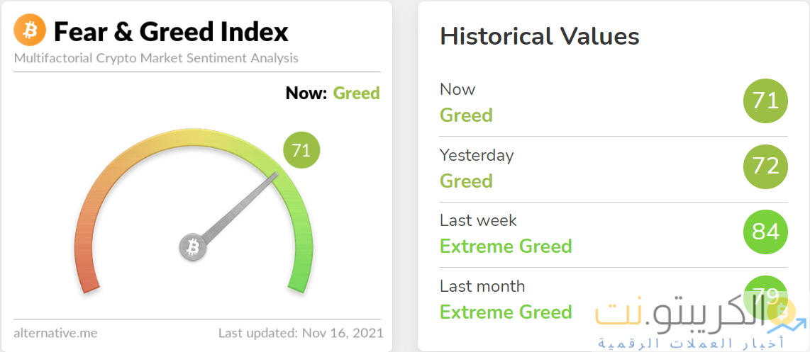 مؤشر بيتكوين للخوف والطمع | المصدر: بديل