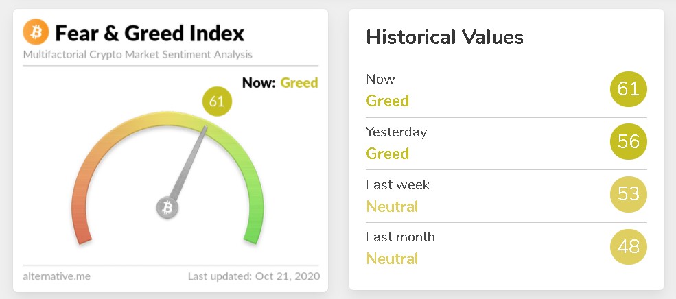 بشكل عام ، شهد السوق تعطلًا وانهيارًا صغيرًا منذ عام 2018 وتغير المستخدمون أيضًا على نطاق واسع منذ السباق الصاعد 2017 النظام البيئي أكثر نضجًا نسبيًا ، وهو ما يفسر أيضًا دخول المؤسسات إلى السوق. يعتبر دخول MicroStrategy و Square صعوديًا على نطاق واسع خاصة بسبب الاستقرار المستمر في السعر على الرغم من إعلانهما. كانت معنويات الأسبوع الماضي محايدة ولم تتحول إلى جشع بشكل معتدل