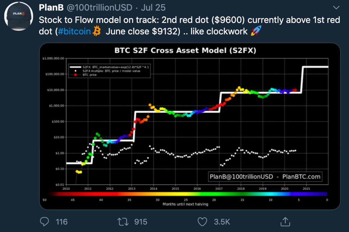 في الواقع ، توقع نموذج S2F Cross-Asset الأخير (مع بعض الانحراف) أيضًا سعر Bitcoin التقريبي بعد حدث النصف في مايو ، مع التصور السائد هو أنالاهتمام المستمر بعقود البيتكوين الآجلة والطلب الجديد من المشترين في بورصات العملات المشفرة يمكن أن يعزز أكبر سعر عملة معماة في العالم.