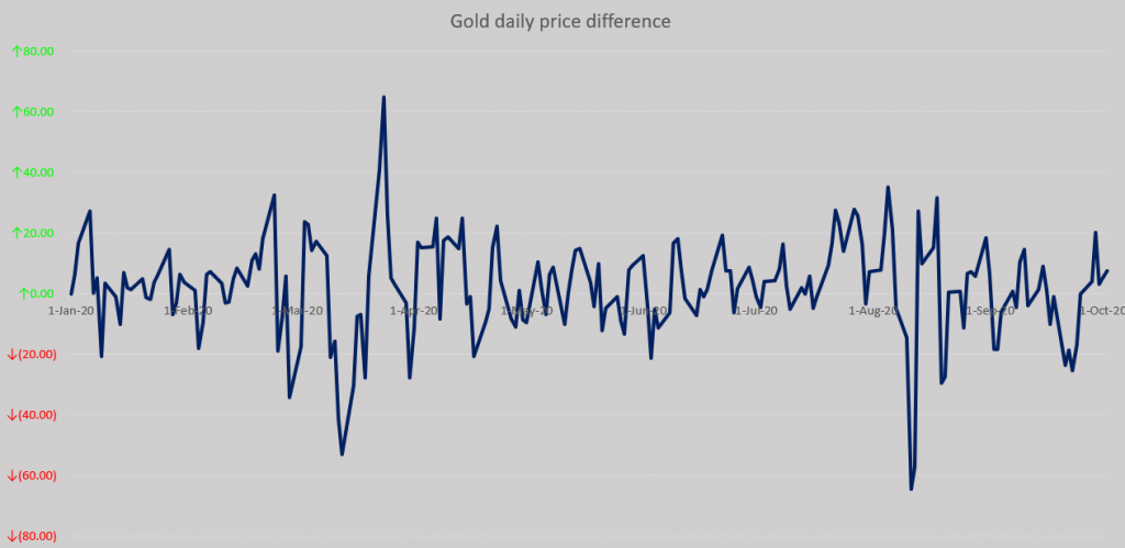 ضع في اعتبارك أن الذهب وصل إلى أعلى نقطة له منذ عام 2013 في أغسطس ، حيث بلغت قيمته أكثر من 2000 دولار ، ومتوسط ​​التقلب اليومي لهذا العام أقل من 0.8 في المائة من سعره.