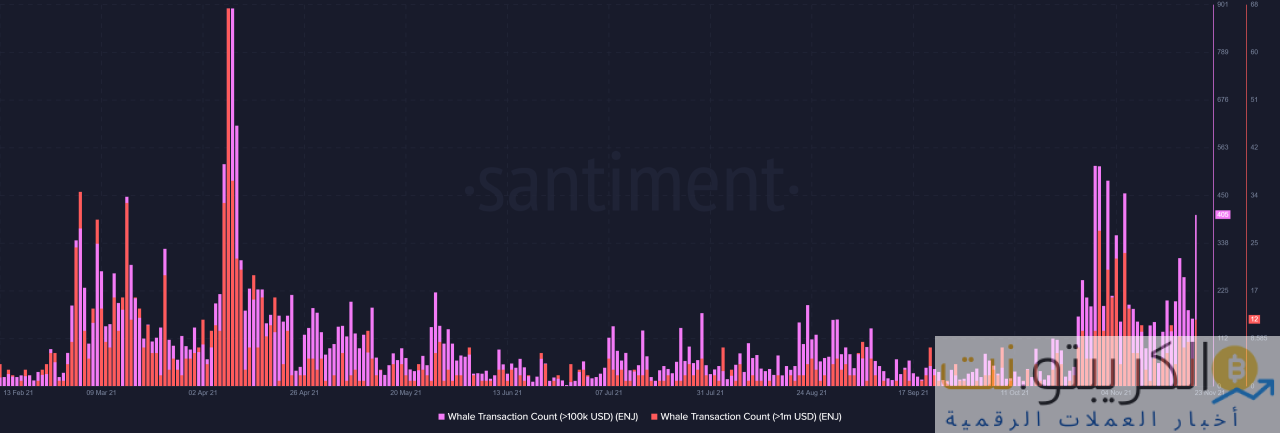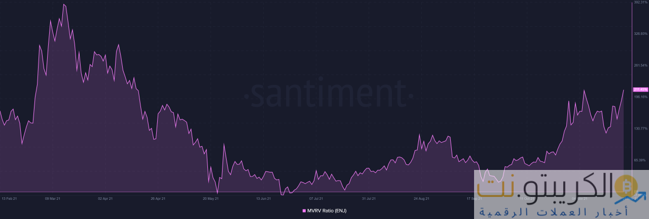 مع الأخذ في الاعتبار جميع الحالات المذكورة أعلاه ، يصبح من الواضح أن الشبكة في مساحة جيدة الآن. يمكن أيضًا دعم ذلك من خلال ارتفاع القيمة السوقية لـ ENJ. في الواقع ، وصل المؤشر إلى أعلى مستوياته منذ أكثر من سبعة أشهر الآن.