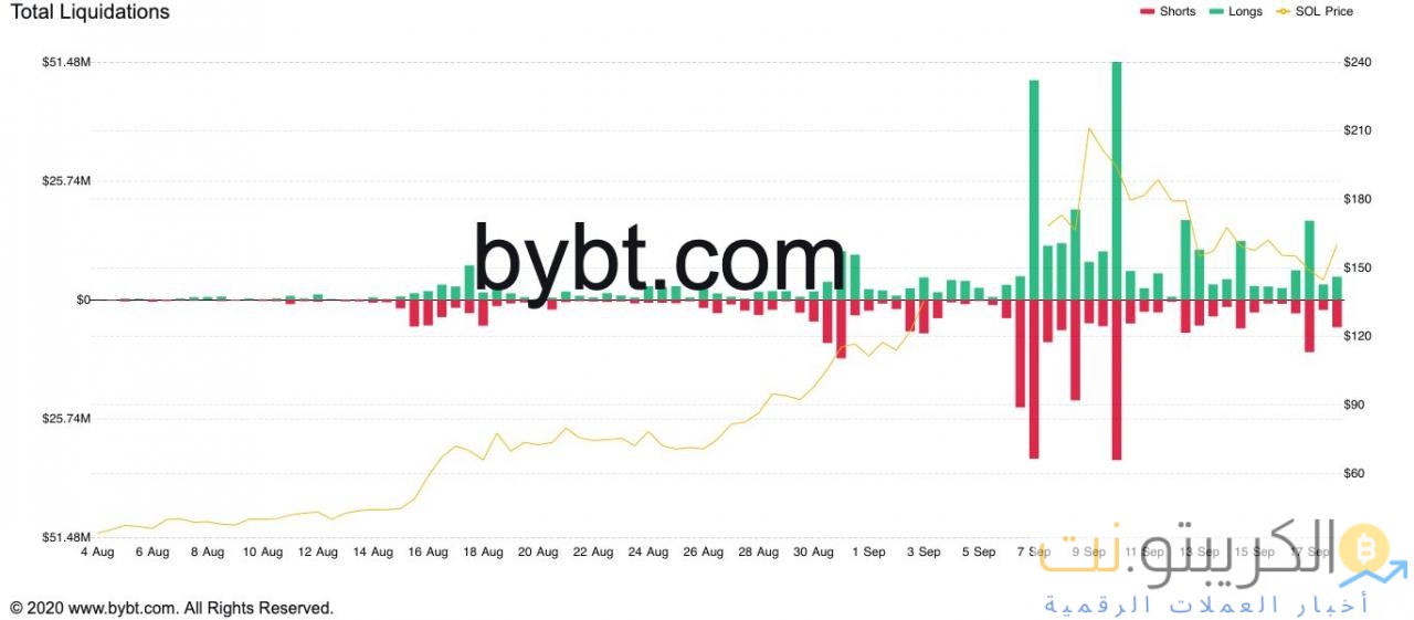 شوهد نوع مماثل من الارتفاع في الاهتمام المؤسسي والتجزئة في Solana عندما صنعت ATHs جديدة قبل أسبوعين فقط. لكن هذا فقد من السوق قريبًا ، حيث أظهرت بيانات من Bybt أن أكثر من 265 مليون دولار في عمليات تصفية Solana قد تم القضاء عليها منذ أن بلغت SOL ذروتها عند أعلى مستوى لها على الإطلاق عند 216 دولارًا في 9 سبتمبر.