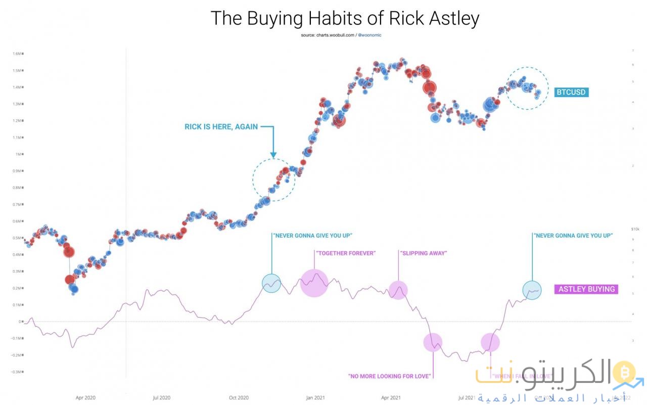 Rick Astley hodlers هم في الأساس أيدي قوية “لن تستسلم أبدًا” ، بدلاً من عملات Hodl ولا تدع ميزان جلستهم ينخفض أبدًا. من المثير للاهتمام أن نلاحظ أنه في 13 أبريل عندما تجاوزت Bitcoin 63 ألف دولار ، نسب الكثير ، بما في ذلك Woo ، ذلك إلى مخادعي ‘Rick Astley’.