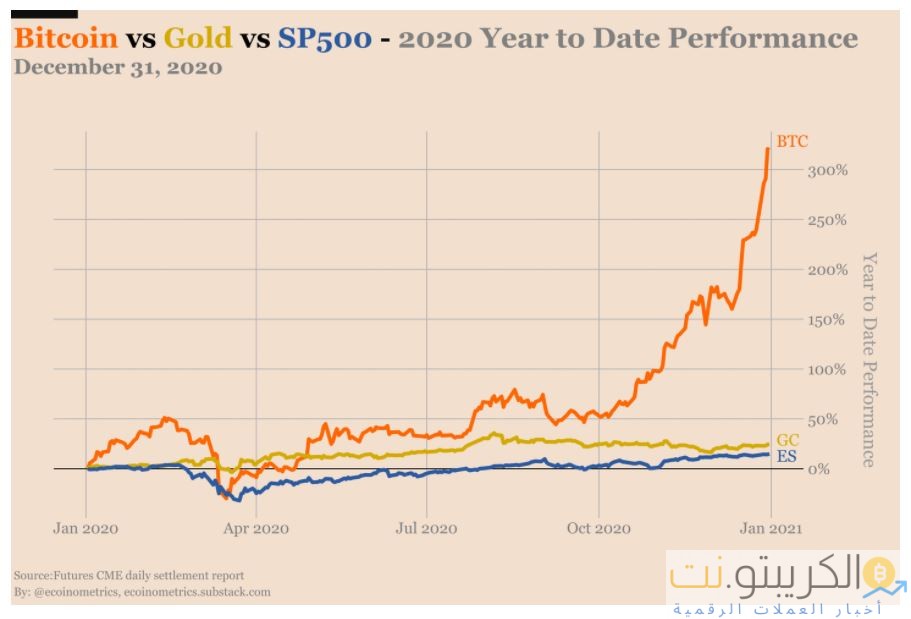 مقارنة بين البيتكوين والذهب والأسهم الشعبية منذ يناير 2020