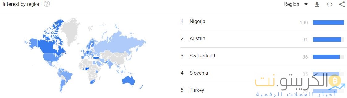 وفي الوقت نفسه ، أشارت بيانات Google Trends أيضًا إلى أن نيجيريا كانت رائدة من حيث اهتمام Bitcoin خلال الـ 90 يومًا الماضية.
