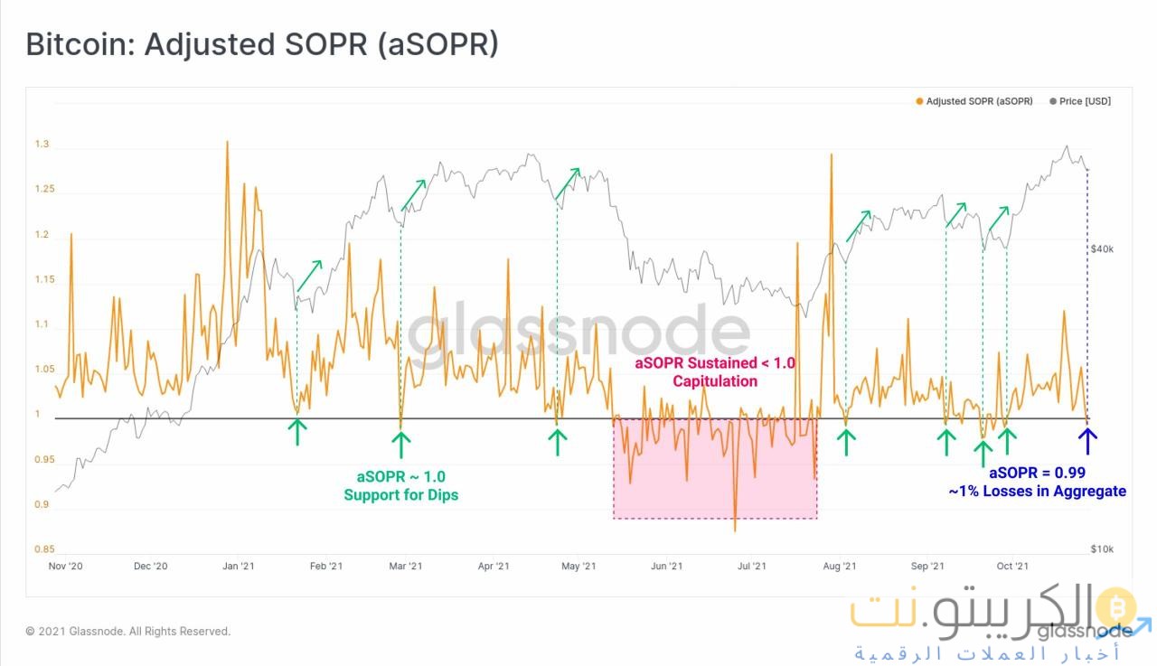 بيتكوين aSOPR | المصدر: Glassnode