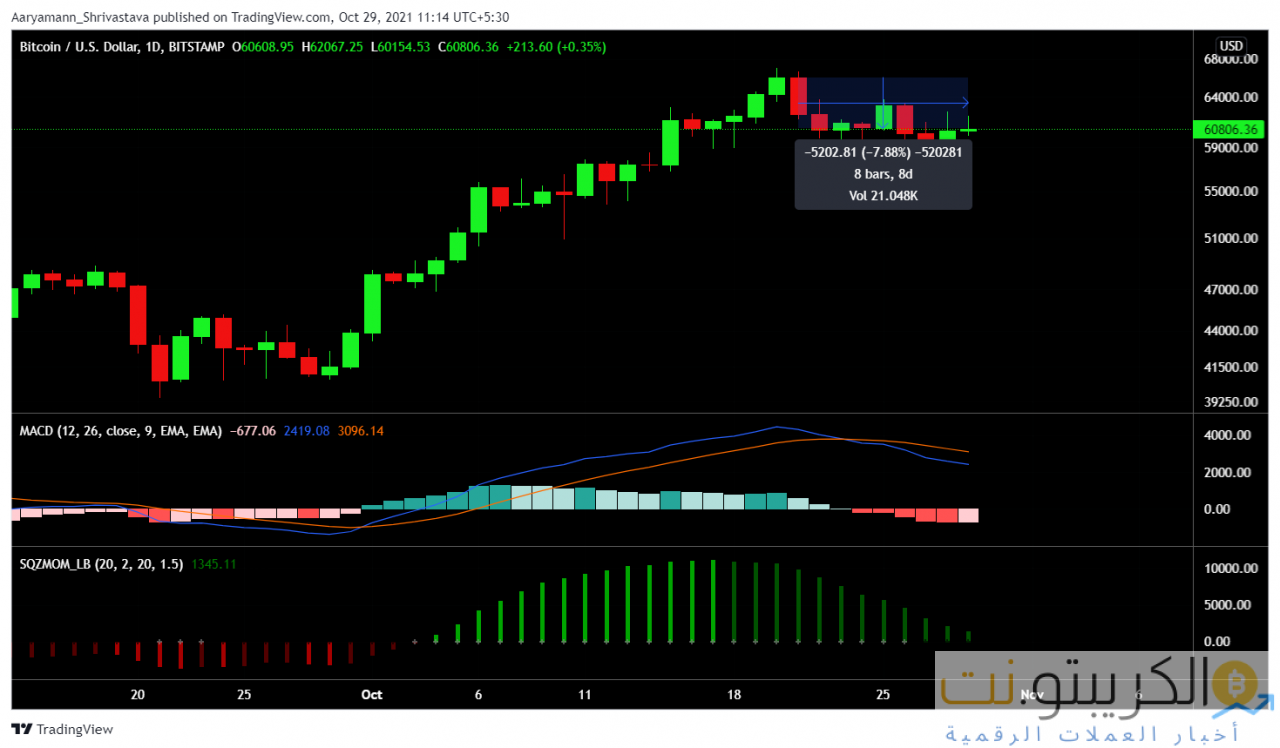 منذ 21 أكتوبر 2021 ، انخفضت عملة الملك بنسبة 8٪ تقريبًا. ومع ذلك ، فإن تصحيح الأسعار أمر شائع بعد هذه الارتفاعات. كان سقوط نسبة ربح الناتج المستهلك هو الذي أثار المخاوف. نظرًا لانخفاض المؤشر من قوة إلى ضعف ، فقد أشار إلى 3 سيناريوهات محتملة للمضي قدمًا.