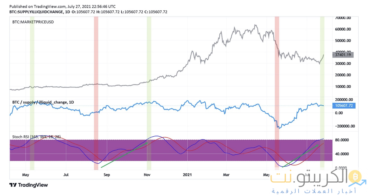 والجدير بالذكر أنه خلال عمليات الانطلاق الصاعدة السابقة ، ظل هذا المقياس عادةً فوق 0.7. وبالتالي ، إذا استمرت قراءة 0.38 في اتجاهها الصعودي واخترقت المستوى 0.7 في الأسابيع المقبلة ، فإن الارتفاع الصعودي لعملة البيتكوين سيكون أمرًا لا مفر منه تقريبًا.