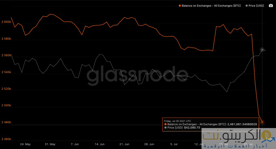تعرض رصيد Bitcoin في البورصات لسقوط مجاني في الآونة الأخيرة. خلال الأيام الثلاثة الماضية ، تقلص الرصيد من 2.580 ألف بيتكوين إلى 2.480 ألف بيتكوين. تم استكمال التدفقات الخارجة التي تزيد عن 100 مليون من البورصات بشكل متوازي من خلال زيادة كبيرة في عدد المعاملات الكبيرة. في الحقيقة، ITB’s كشفت البيانات أن عدد هذه المعاملات قد لامس مستوى 260 ألفًا أيضًا.