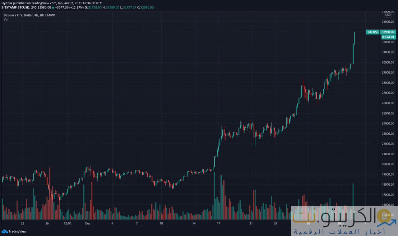 تجاوزت عملة البيتكوين للتو 32500 دولار لأول مرة على الإطلاق منذ دقائق. اعتبارًا من كتابة هذا المقال ، يتم تداول العملة المشفرة الرائدة بسعر 32600 دولار في أفضل البورصات.