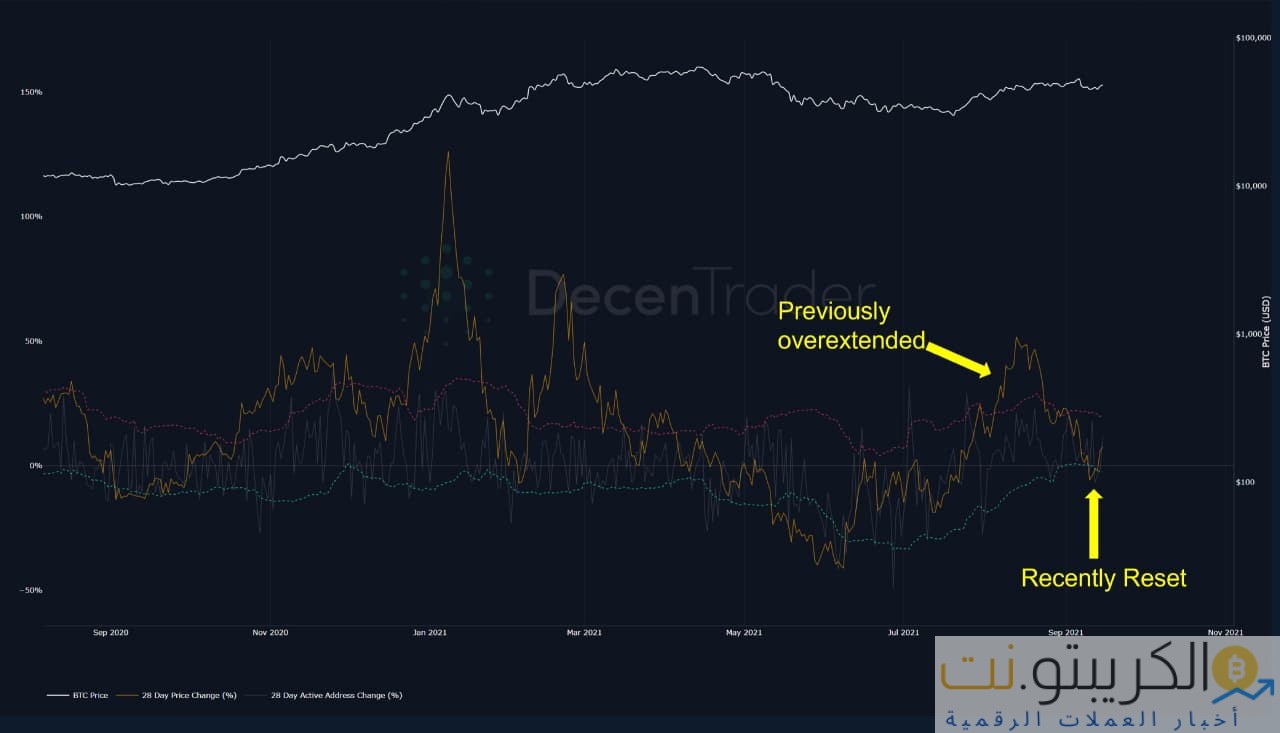 علاوة على ذلك ، هناك عامل آخر ساهم في المسار الصعودي للبيتكوين على المدى المتوسط وهو SOPR الذي قدم اتجاهًا مشابهًا للأشهر التي أعقبت انهيار شهر مارس. بعد الانهيار الصيفي حيث كان SOPR يطبع بكثافة الشموع الخضراء ، لوحظ بعض عمليات البيع الطفيفة بالخسارة في هذا التراجع من 50000 دولار أيضًا. وبالتالي ، أطلق SOPR نوعًا من فرصة الشراء عند التراجع حيث تم طرد البائعين النهائيين قبل أن يتحركوا للأعلى ، كما لوحظ في الربع الرابع من عام 2020.