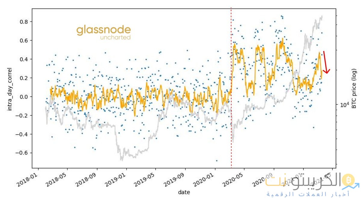 يستمر ارتباط البيتكوين بسوق الأسهم في الانخفاض فهل هو مؤشر صعودي؟