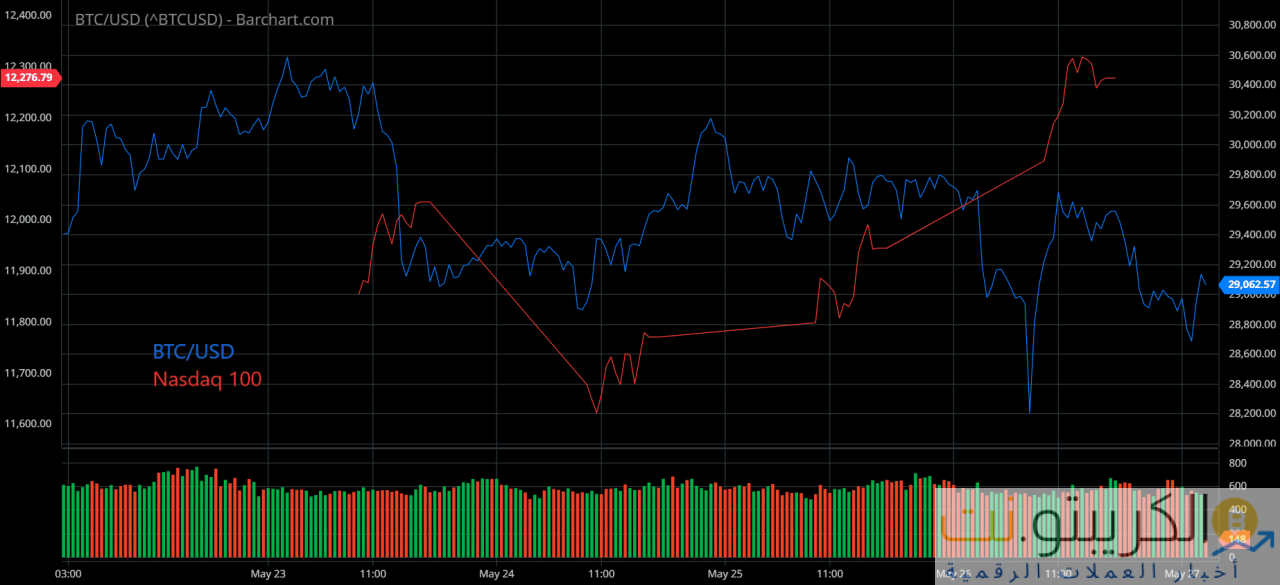 انخفضت العملة المشفرة الأكبر في العالم بنسبة 4.5٪ في الأيام السبعة الماضية عند حوالي 28000 دولار. وبالمقارنة ، فإن مؤشر ناسداك 100- أقرب موازٍ لـ BTC في سوق الأسهم- من المقرر أن يحقق مكاسب بنسبة 2٪ هذا الأسبوع.