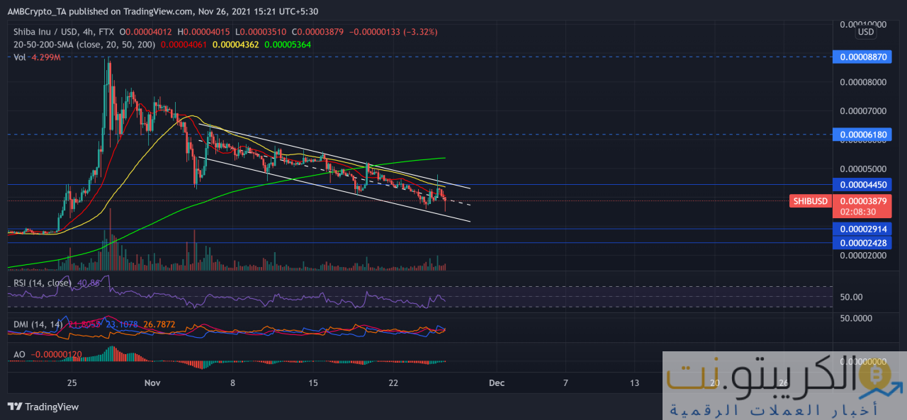 نزل SHIB في قناة هابطة طوال هذا الشهر. فقدت عملة meme أكثر من نصف قيمتها منذ أن ضربت ATH في 28 أكتوبر.