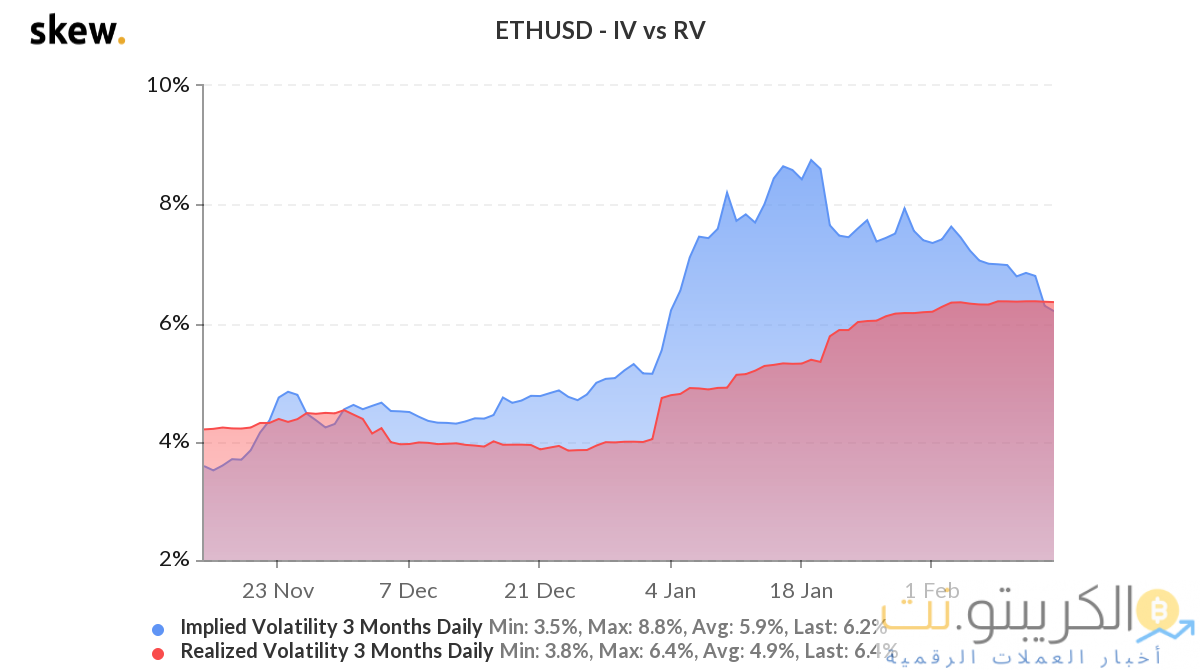 التقلبات المتحققة من ETH> التقلب الضمني منذ 29 نوفمبر 2020