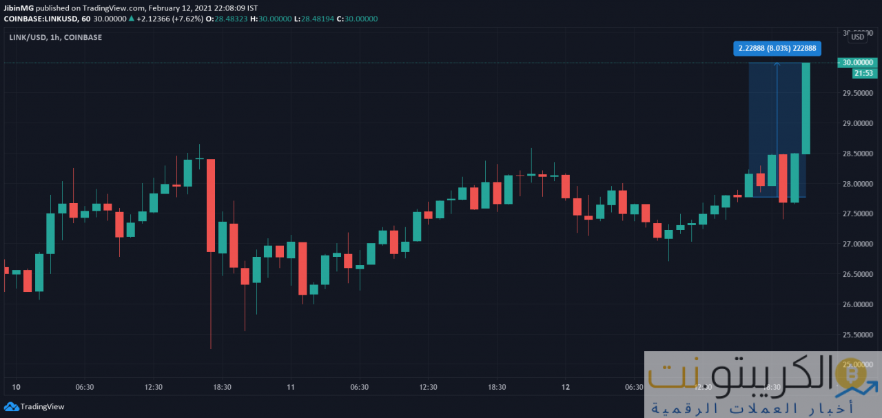 عملة لينك link تحقق أعلى سعر لهذا اليوم عند مستوى 30 دولار